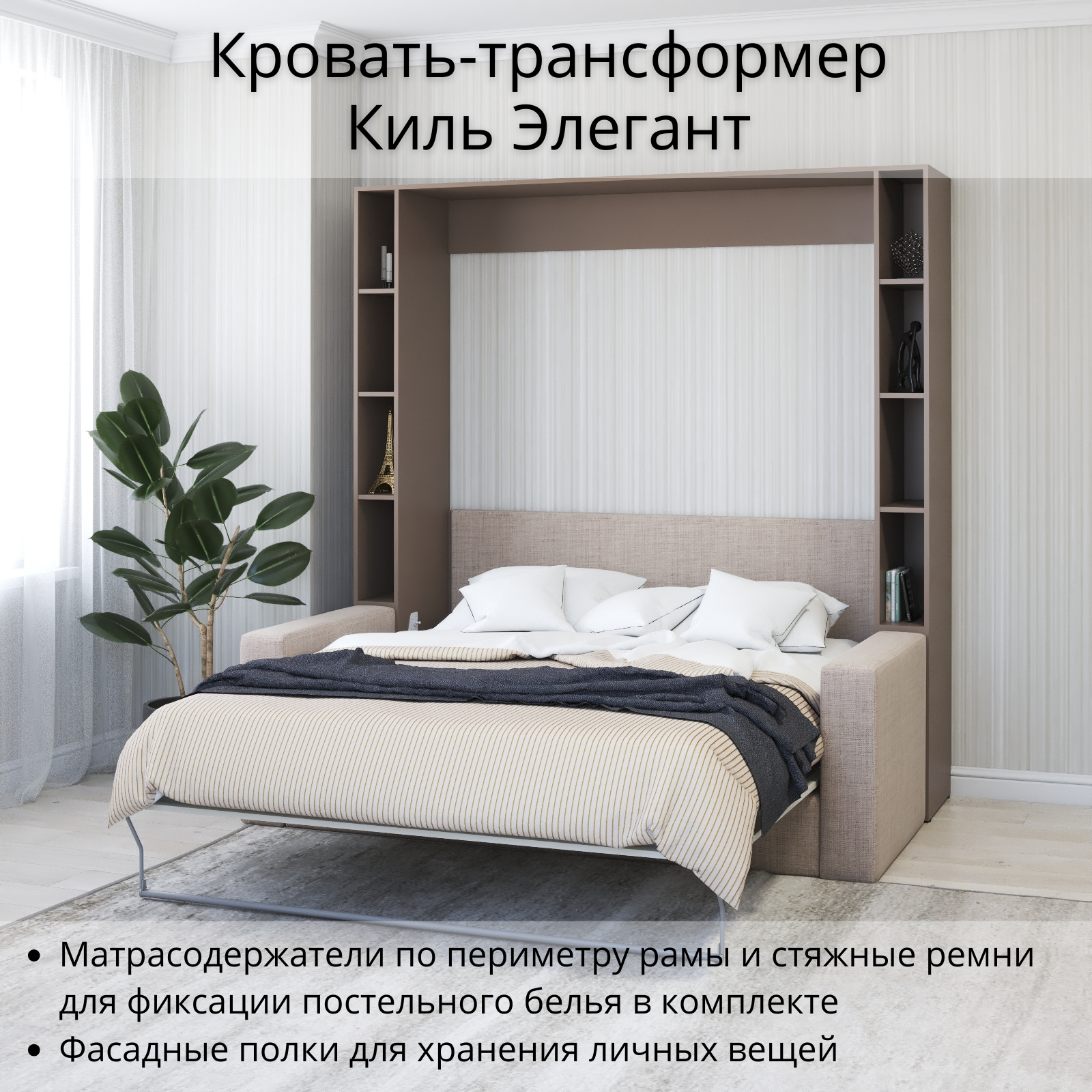 Шкаф кровать трансформер с креплением к стене, Stylint, Киль Элегант, 160х200, Мокко/Белый платиновый