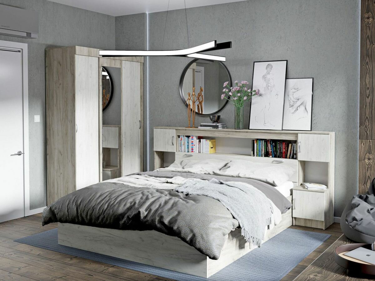 Кровать двуспальная Бриз 160х200 см, с полками, Дуб Крафт серый / Дуб Крафт белый интересное: