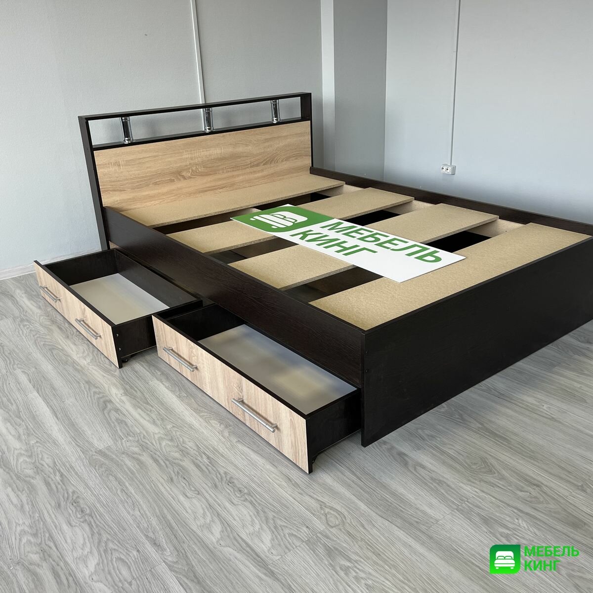 Двуспальная кровать с усиленным ДСП основанием Саломея с ящиками 140х200, венге, Мебель Кинг