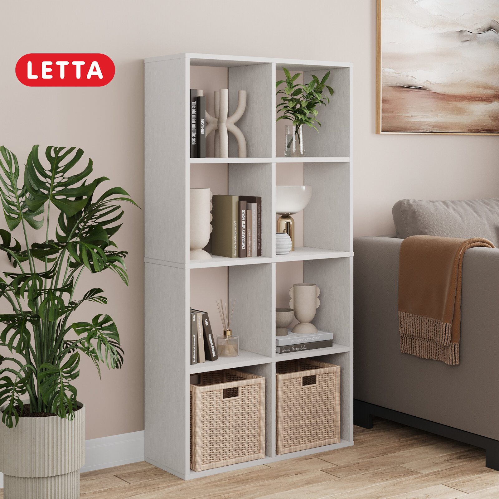Купить Стеллаж Quatrro 8 секций Белый с тиснением для игрушек для книг