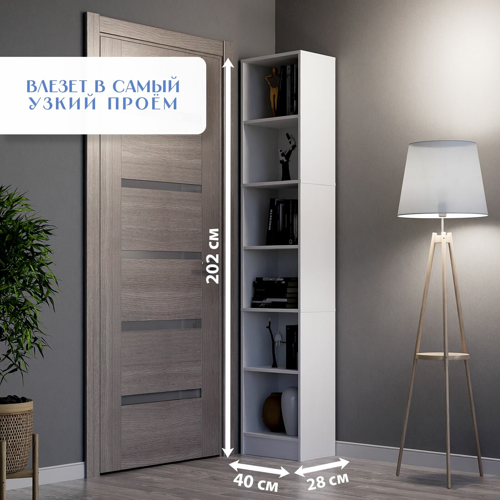Стеллаж Hardy узкий белое тиснение 202*40*28