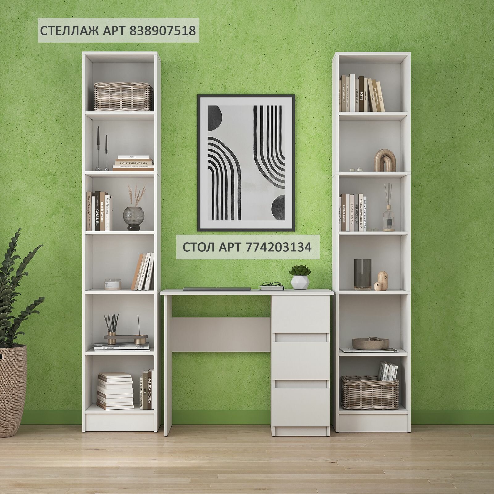 Стеллаж деревянный для игрушек, для книг Hardy узкий белое тиснение интересное: