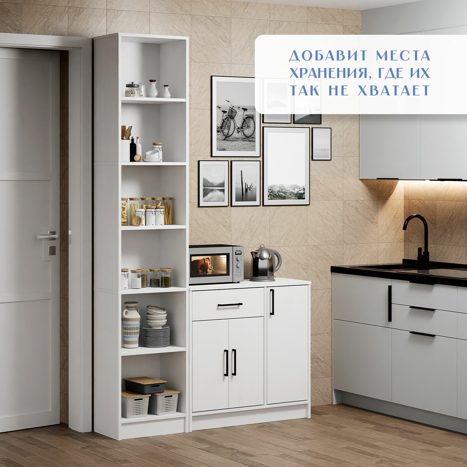 Стеллаж столплит Кито СБ-3240 с ящиками, ЛДСП, белый, 37х34х106 см