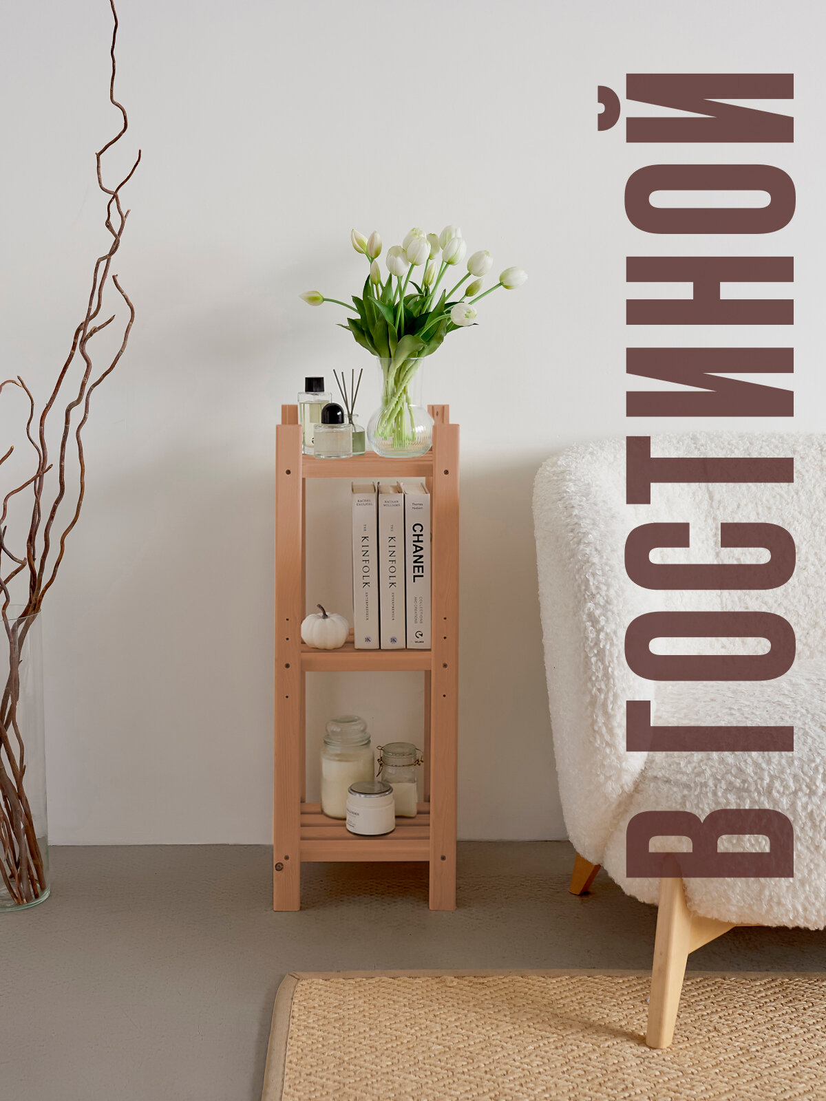 Стеллаж деревянный напольный высокий из массива березы.