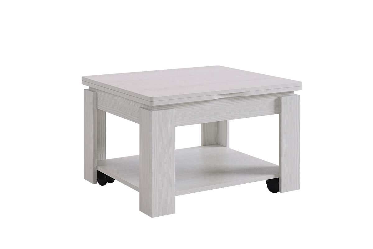 Журнальный стол-трансформер Адам 1, Белый рамух, 70*62 (124)* 43 см., Mebelson