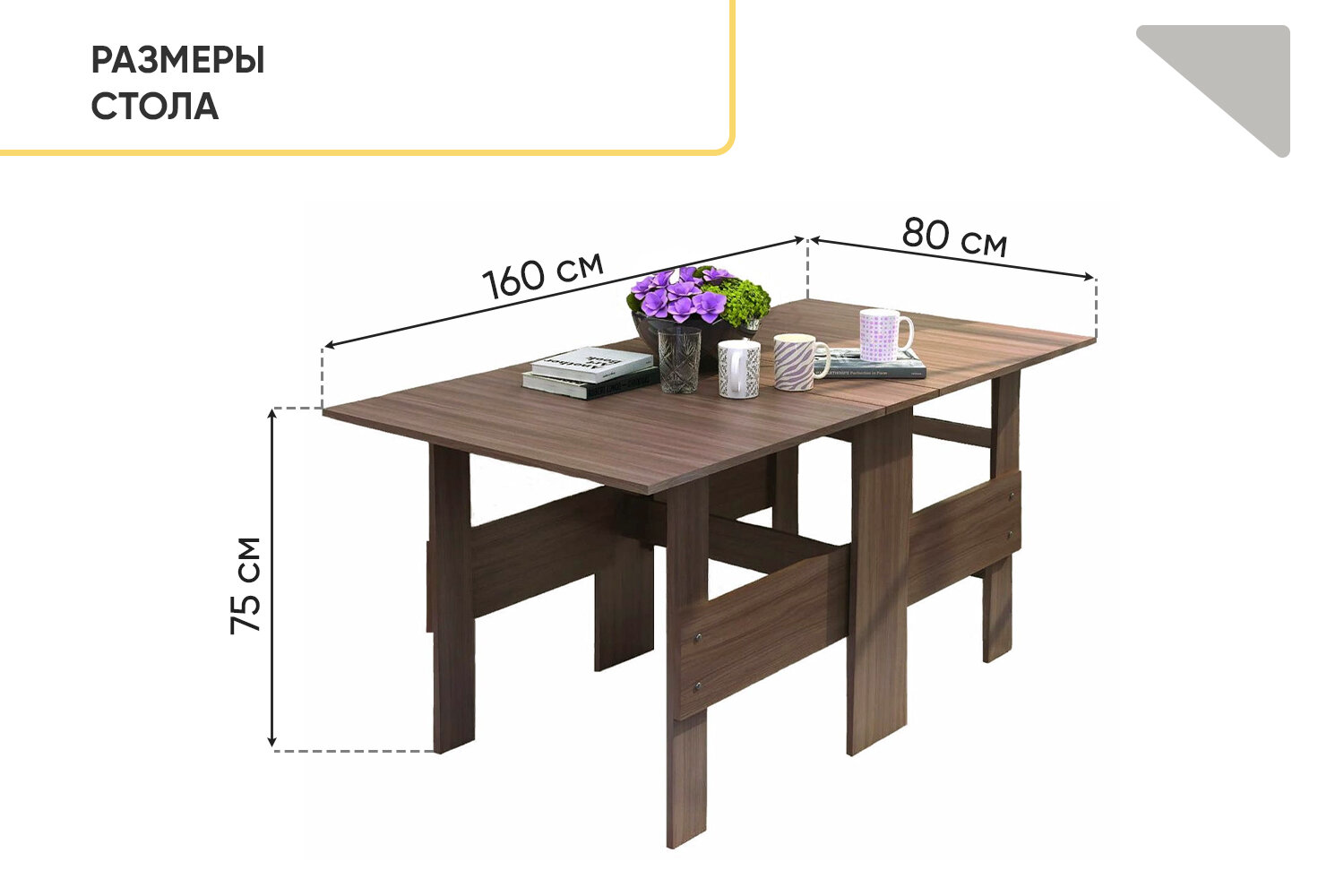 Стол-книжка 80х160 Стандарт цвет Шимо темный Стендмебель