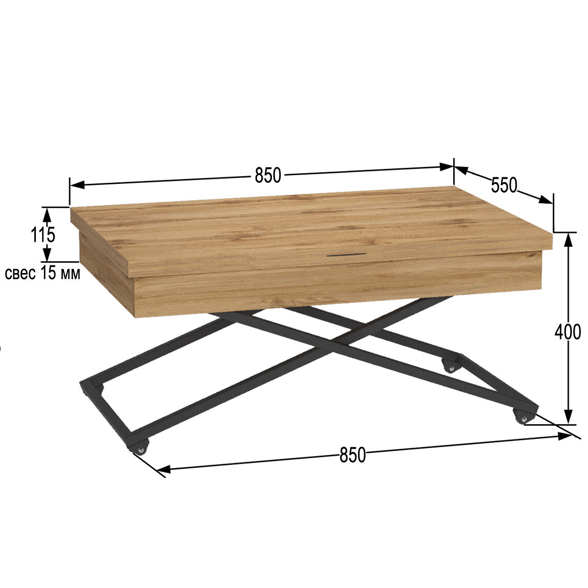 | Дополнительная информация | Размеры столешницы в сложенном состоянии 850*550 мм, в разложенном-1100х850 мм. По высоте стол имеет два положения: 400 мм и 725 мм. |