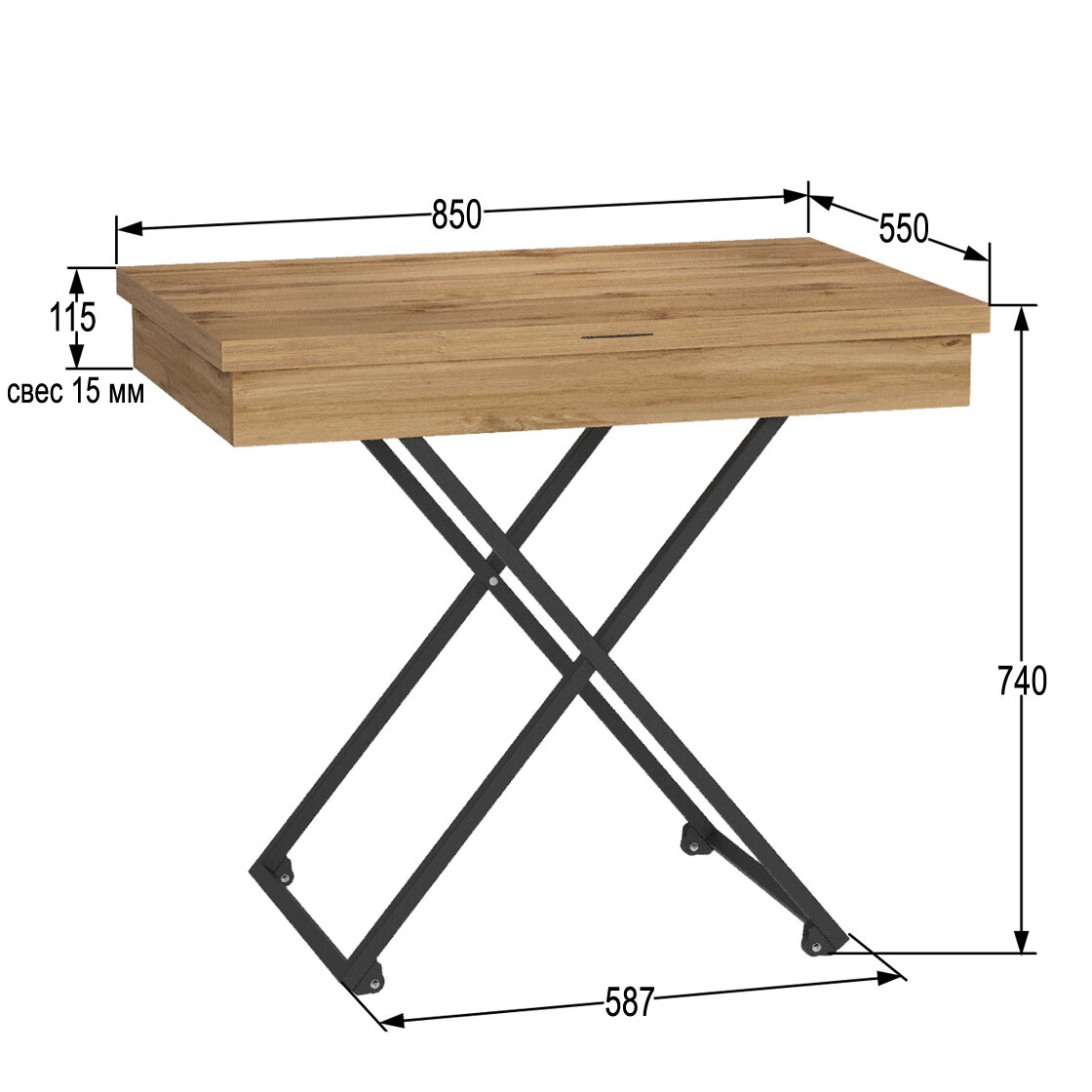 Стол универсальный трансформируемый АНДРЭ Loft ЛДСП дуб вотан/чёрный, 85x38,5x55 см, ЛДСП, Дуб вотан, чёрный.