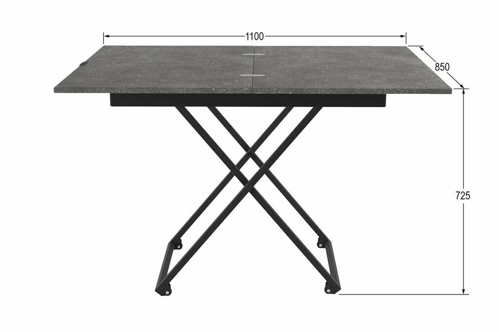| Дополнительная информация | Размеры столешницы в сложенном состоянии 850*550 мм, в разложенном-1100х850 мм. По высоте стол имеет два положения: 400 мм и 725 мм. |