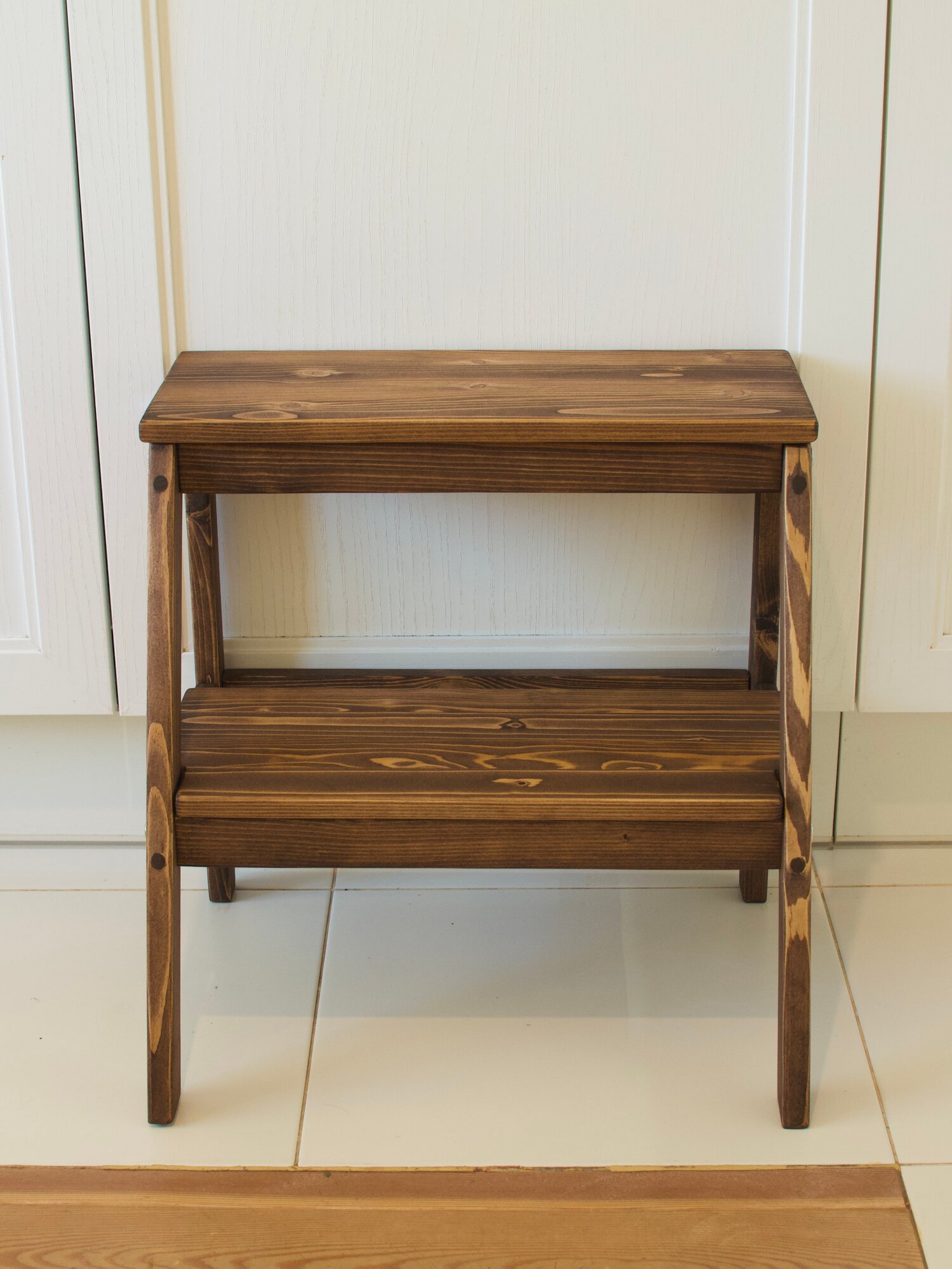 Купить Табурет стремянка из массива, цвет темный орех