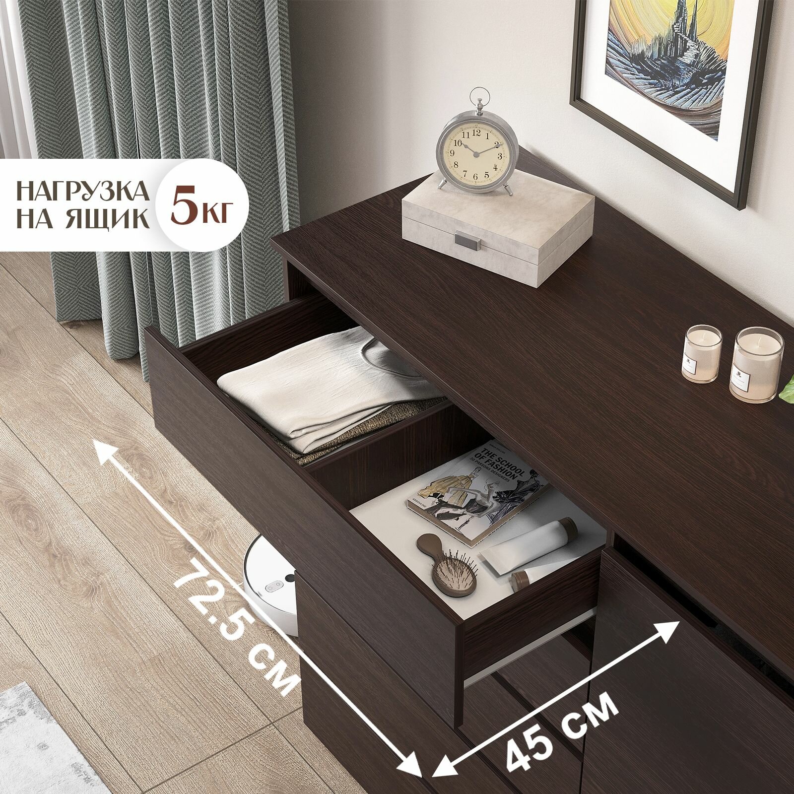 Комод LETTA Malta Plus, для одежды, ЛДСП, 75х39,2х71,9 см, цвет Венге
