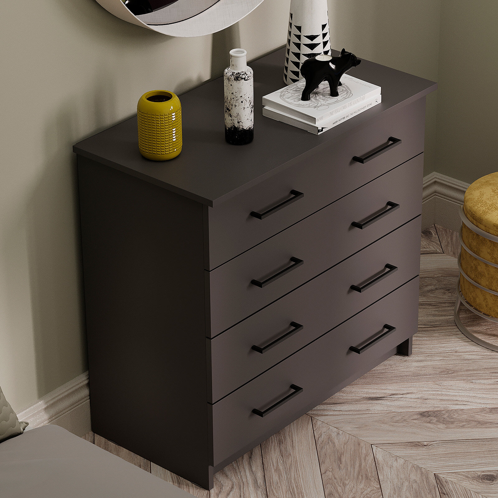Купить Комод LETTA Malta Plus, ЛДСП, серый, 75х39,2х71,9 см, 4 ящика, роликовые направляющие