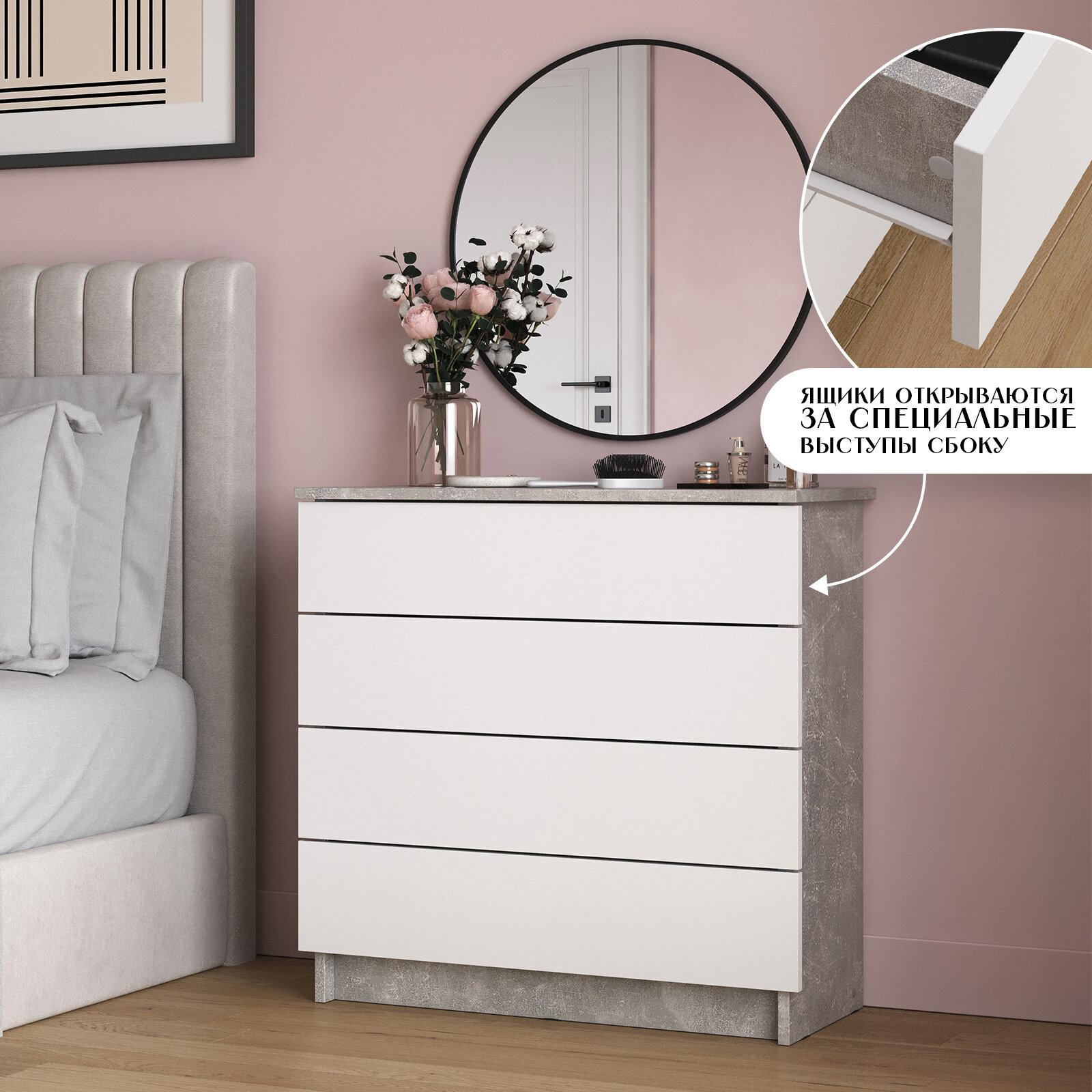 Комод LETTA Ультра, 4 выдвижных ящика, бетонный дизайн, ЛДСП, 73х75х33 см