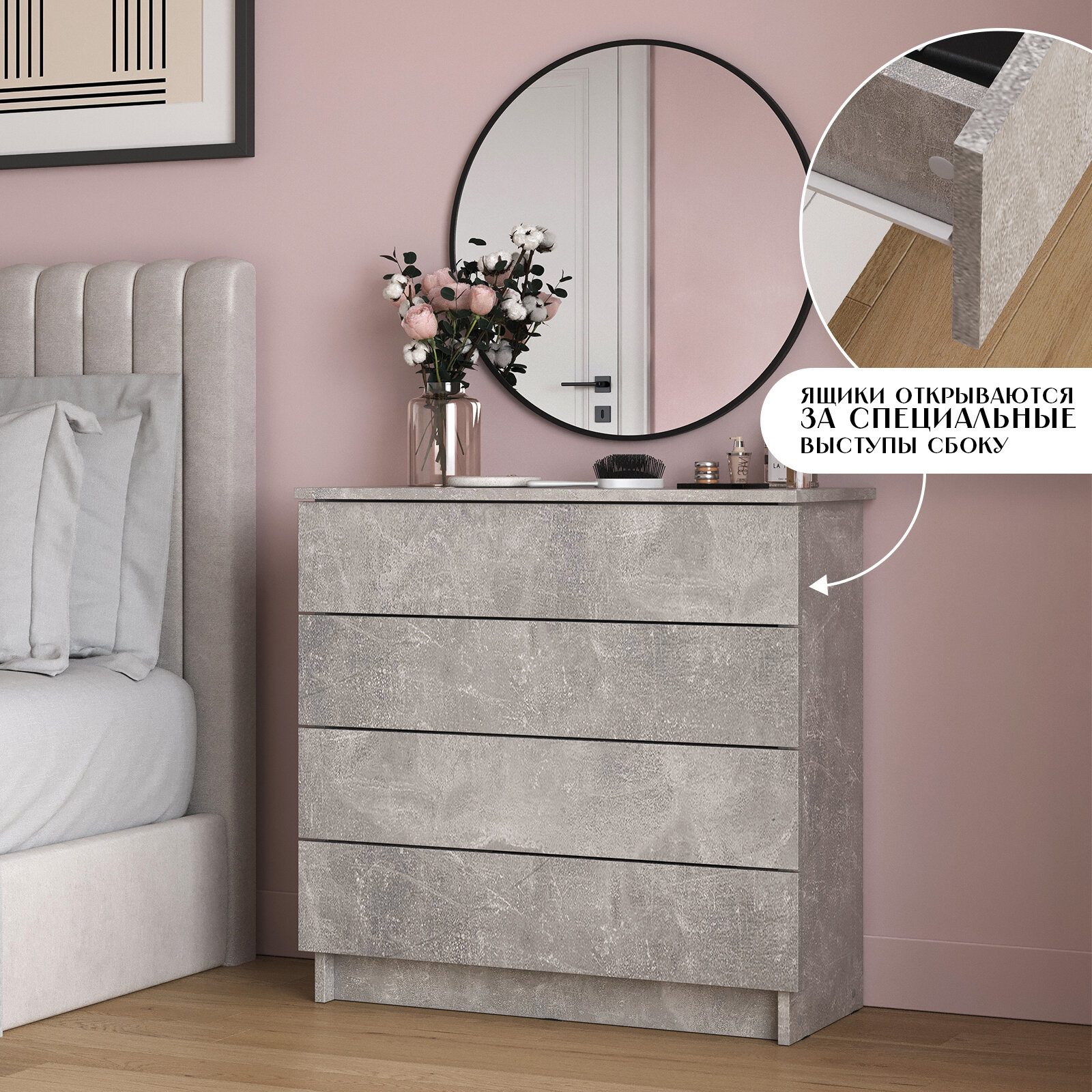 Купить Комод LETTA Ультра, 4 выдвижных ящика, бетонный дизайн, ЛДСП, 73х75х33 см