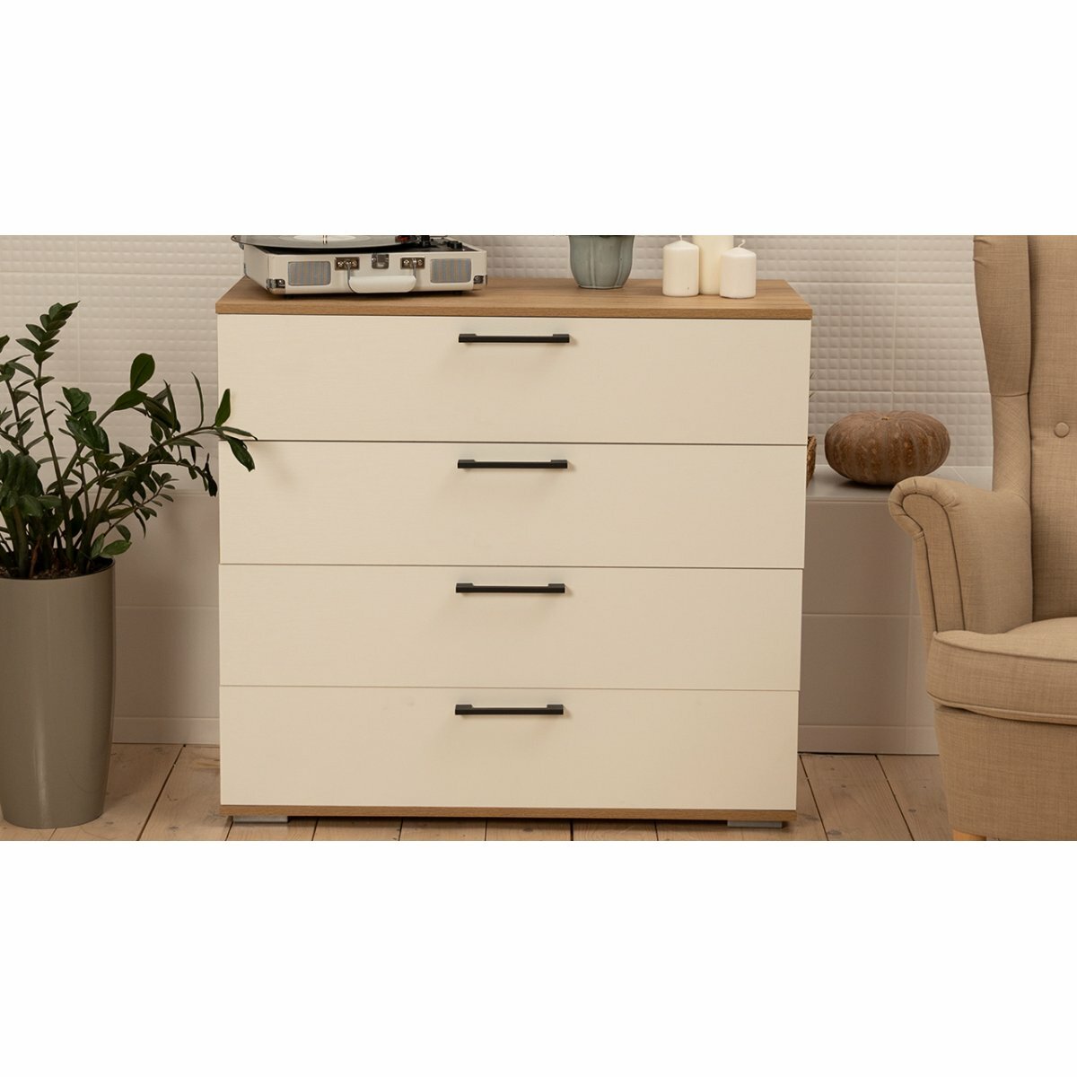 Комод белый бежевый 4 ящика (ВхДхГ) 84х92х41 см, Нео