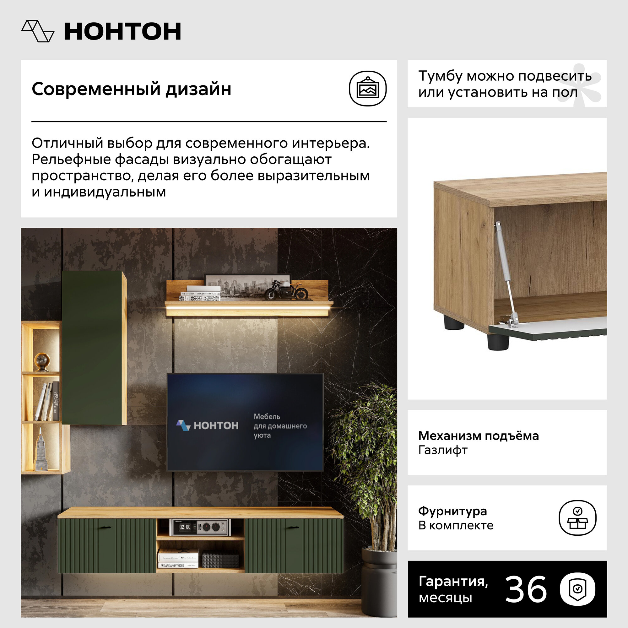 СохранитьТумба под телевизор Нонтон Милан дуб золотой / олива софт 160.1х41.8х36.8 см интересное: