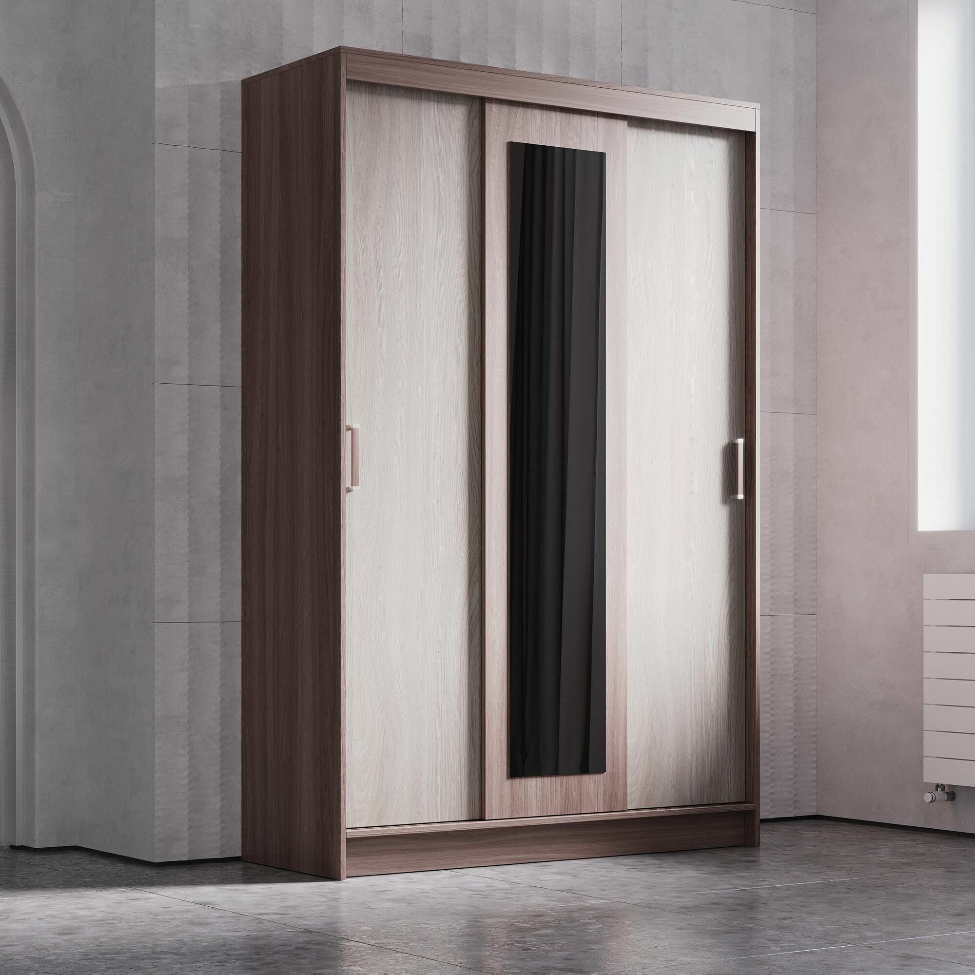 Купить Шкаф-купе Бася/Бассо/ Бруно 5 Ясень Шимо светлый/ темный ЛДСП, с зеркалом, полками, штангой, для прихожей , спальни, гостиной 1300х500х2000 тэкс