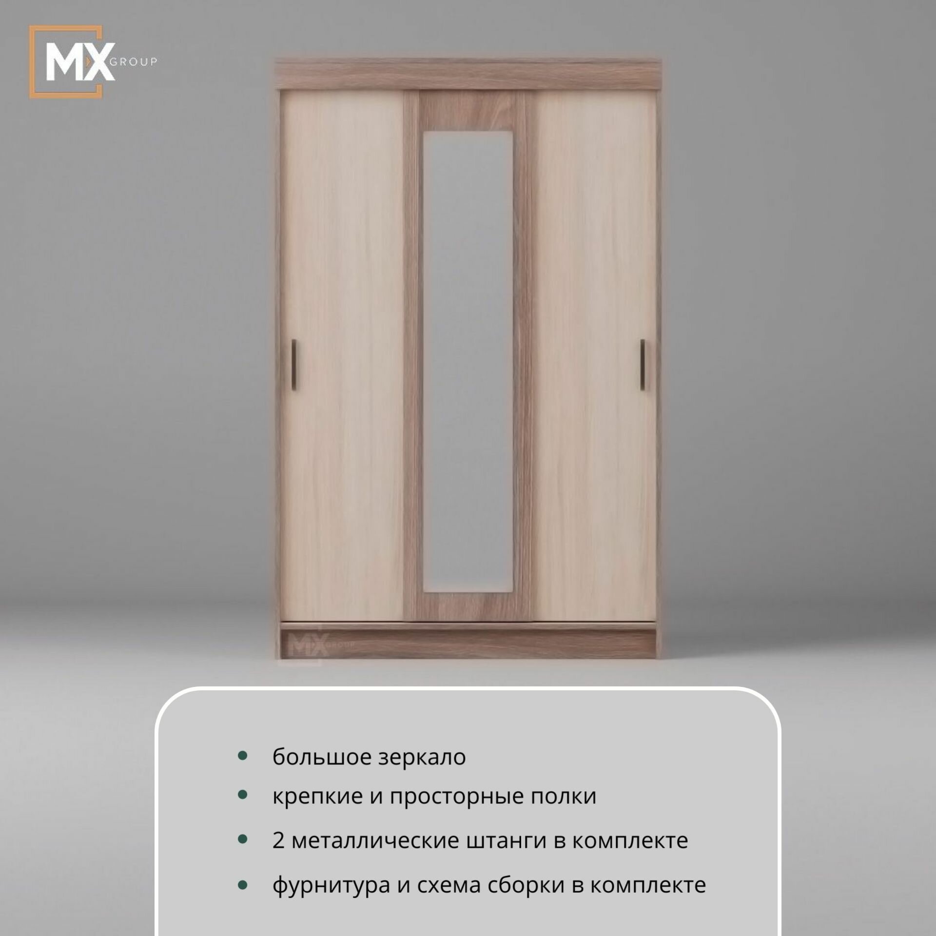 | Особенности | с зеркалом, штанга для вешалок |