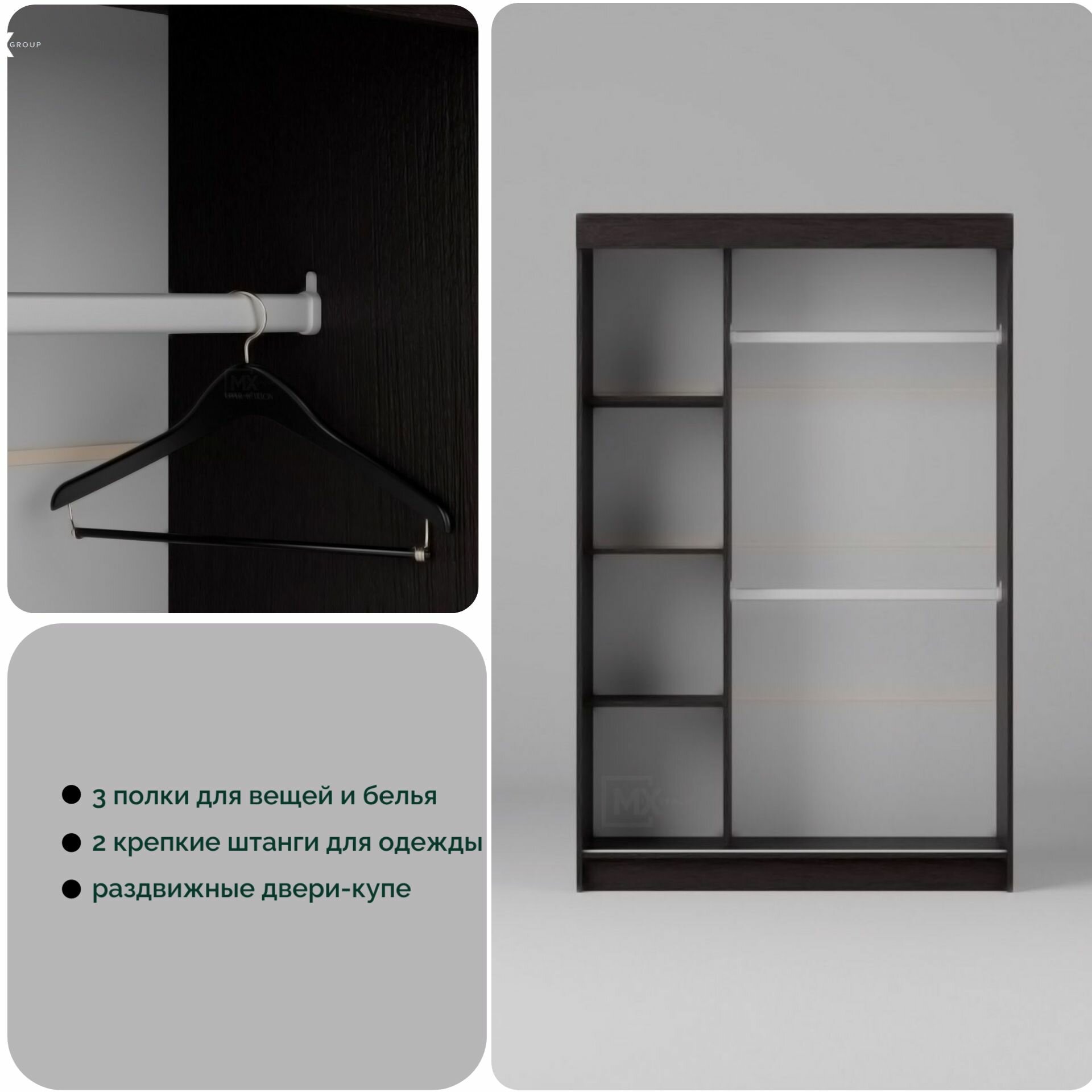 Шкаф-купе Бася/Бассо Венге/Дуб молочный, ЛДСП, с зеркалом, полками, штангой, для прихожей ,спальни, гостиной, 1300х500х2000, тэкс