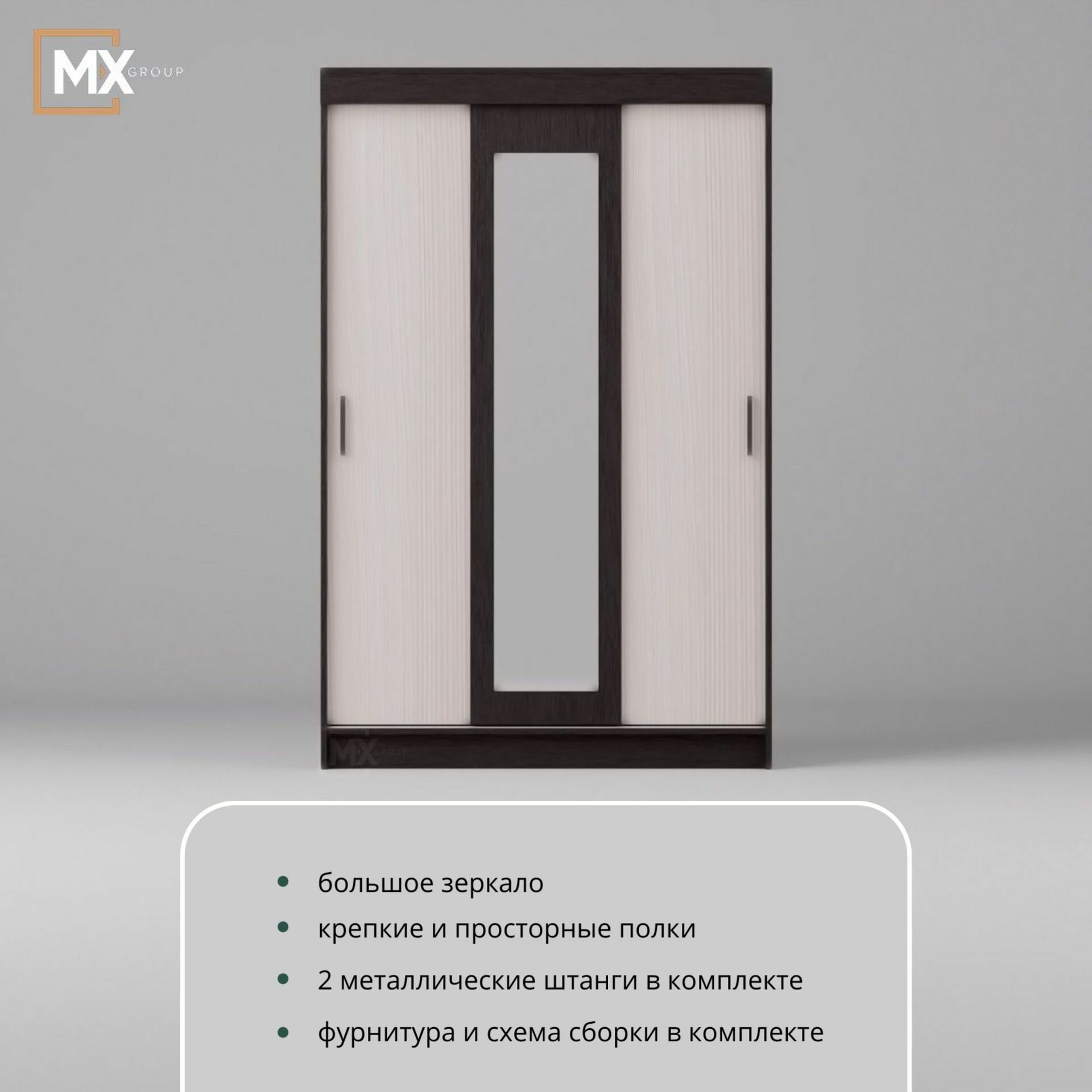 Шкаф-купе Бася/Бассо Венге/Дуб молочный, ЛДСП, с зеркалом, полками, штангой, для прихожей ,спальни 1300х500х2000, тэкс
