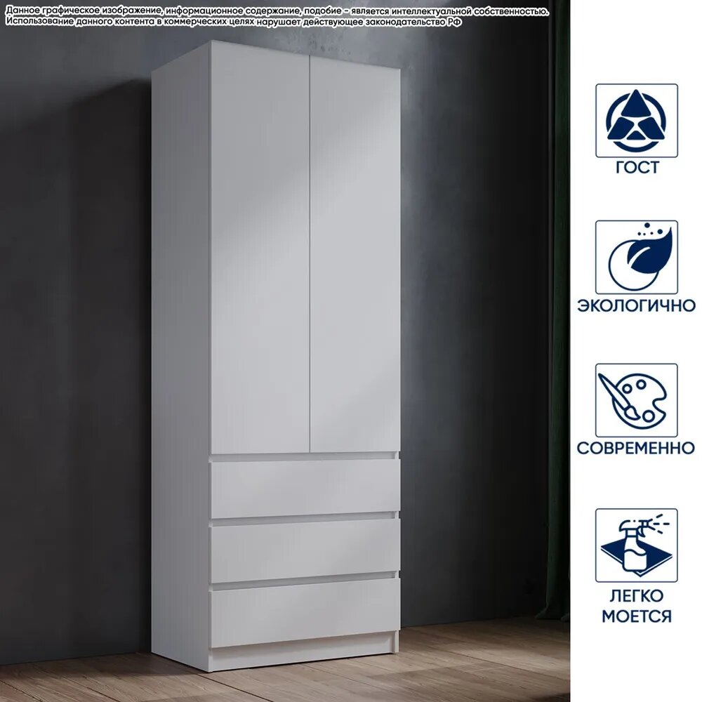 Шкаф распашной для одежды Квазар ШК-0303 240 см, Белый, с полками и ящиками