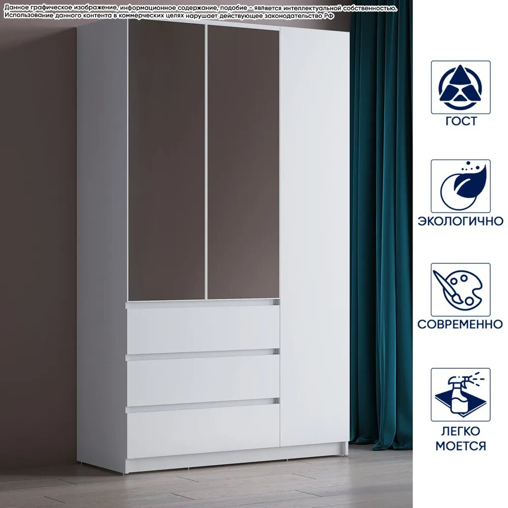 Шкаф для одежды трехдверный правый Квазар ШК-03R 220*120*50 Белый, с ящиками