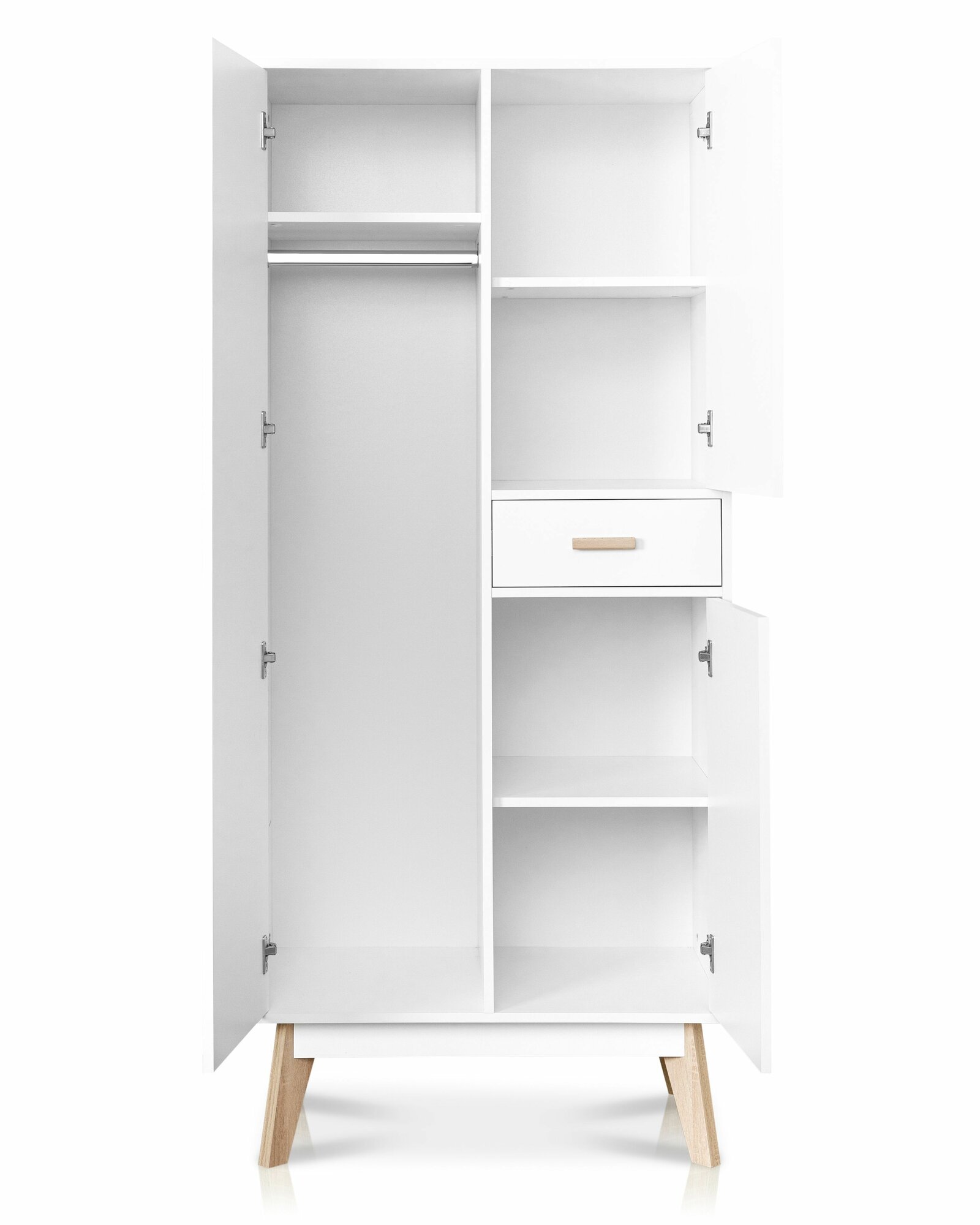 Шкаф для одежды распашной Нонтон Луас, 120 см, 7 полок и штанга, белый глянец