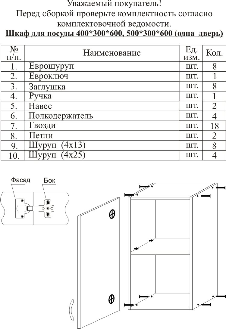 Шкаф для посуды 50 цвет белый (ЛДСП)