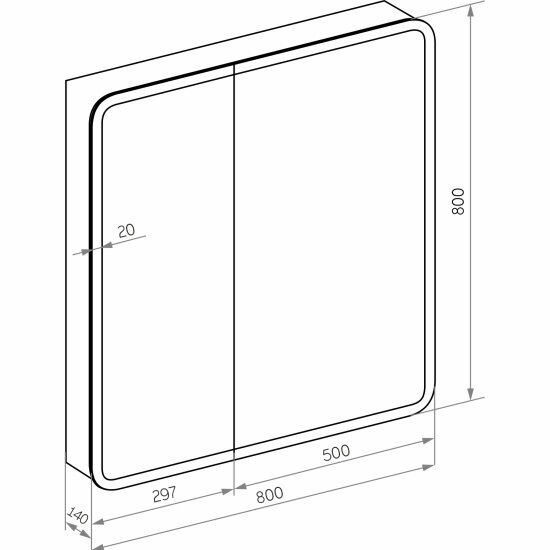 Зеркало-шкаф MIXLINE "Сканди" 800*800 (ШВ) 2 створки, универ. датчик на движение,светодиодная подсв.