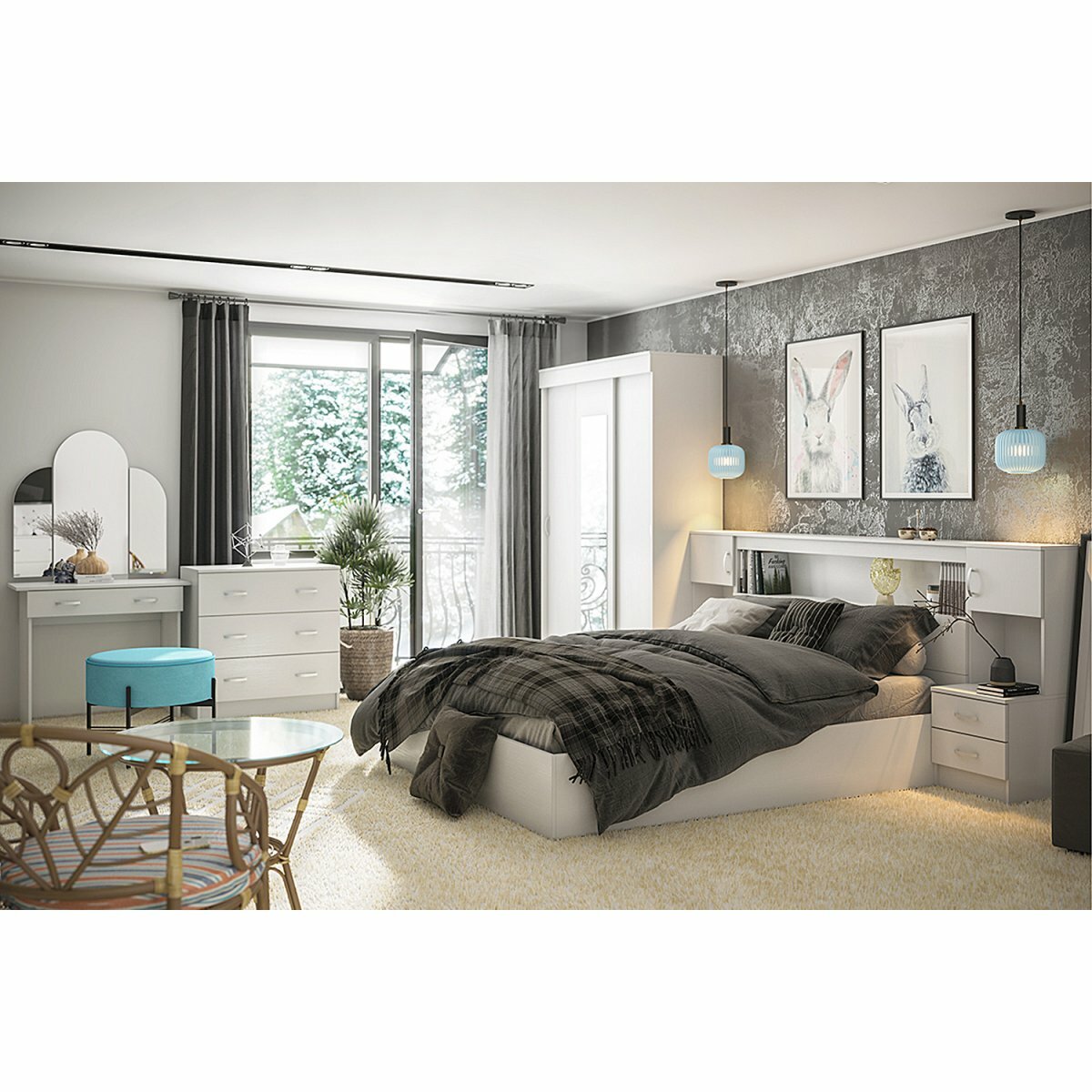 Шкаф для одежды распашной Нонтон Луас, 120 см, 7 полок и штанга, белый глянец
