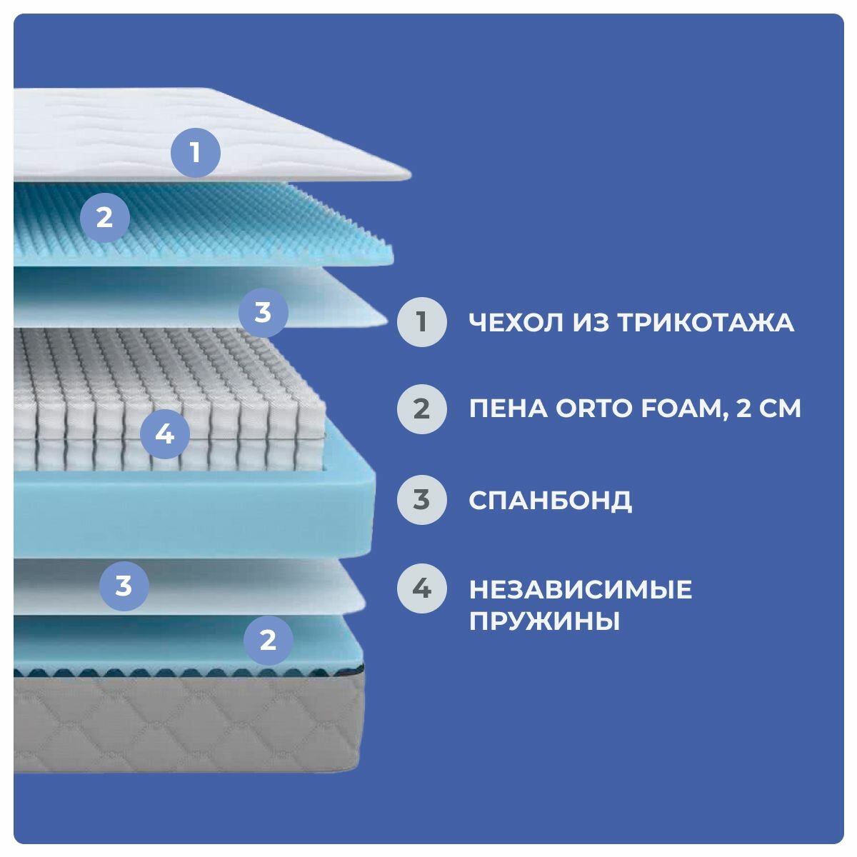 Односпальный матрас 90х200 SOVA Comfort M ортопедический эффект Средний с независимым пружинным блоком