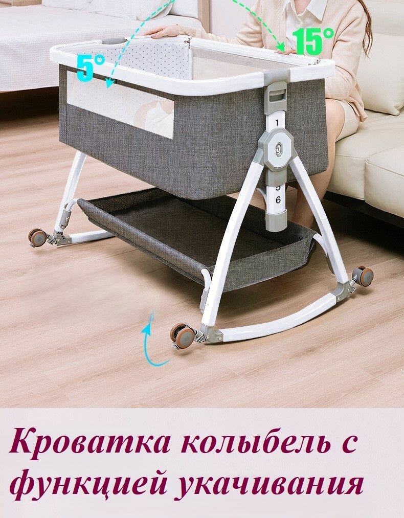 Детская приставная кроватка для новорожденного с пеленальным столиком интересное: