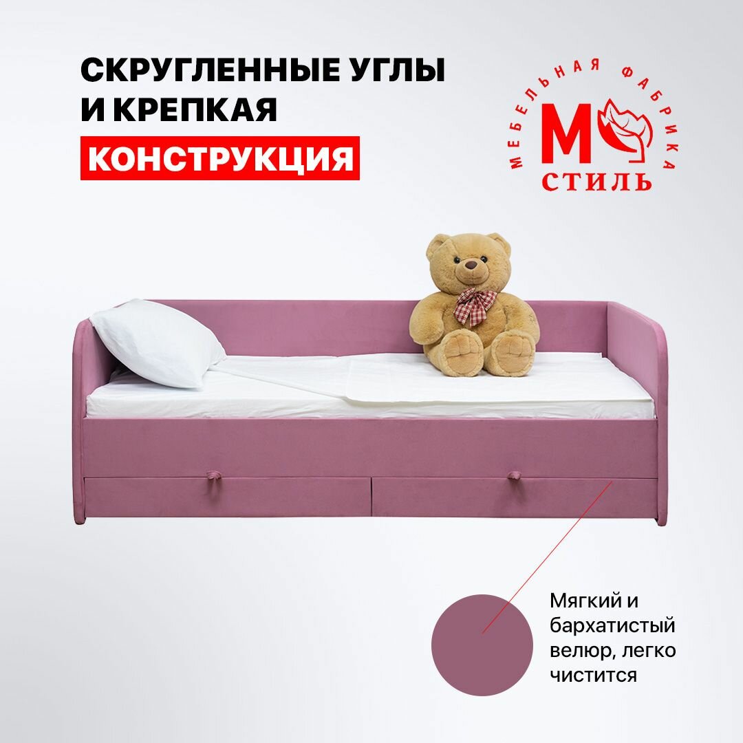 Диван-кровать Софт 190*80 розовая с матрасом, ящиками для хранения