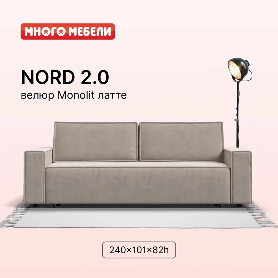Диван-кровать Много мебели NORD 2.0, велюр Monolit латте, 240х101х82 см