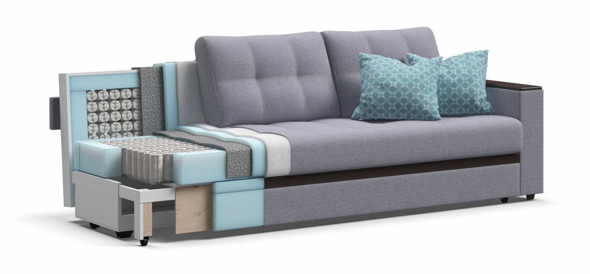 | Особенности | антивандальная обивка, пружинный блок, раскладная конструкция, с подлокотниками, съемные подушки, ящик для белья |