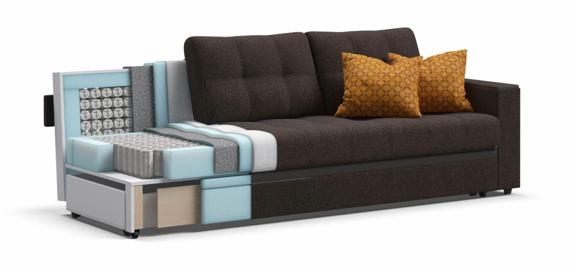 Купить Диван-кровать с ящиком для хранения Атланта НПБ SE, еврокнижка, рогожка Malmo шоколад, 230х105х87 см