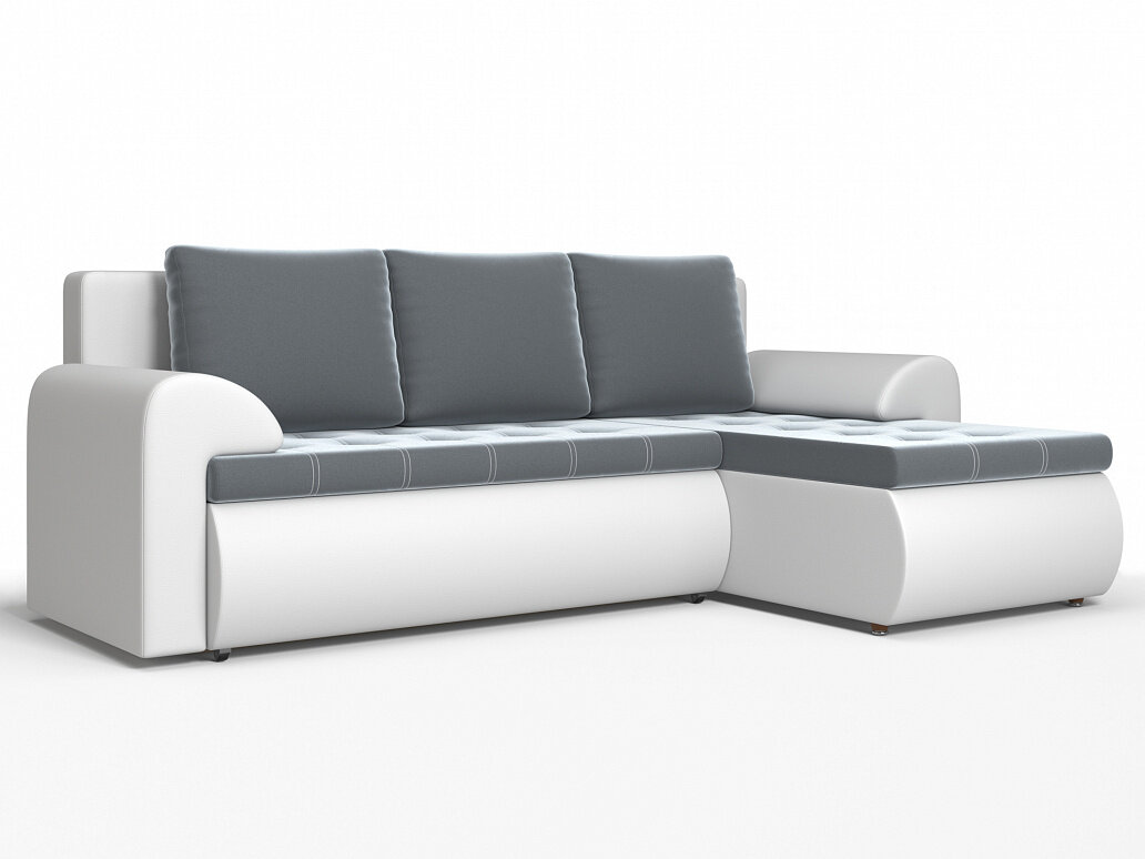 Угловой диван Ванкувер Левый, белый, серый, искусственная кожа, велюр