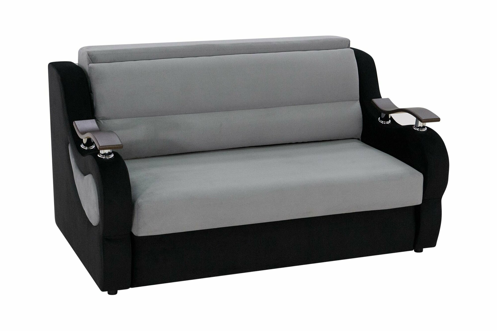 Выкатной диван-кровать прямой Рим серо-черный микровелюр + рогожка с ящиком для хранения (сп. м. 140 см х 195 см)