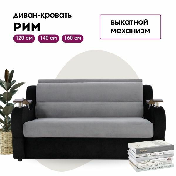 Выкатной диван-кровать прямой Рим серо-черный микровелюр + рогожка с ящиком для хранения (сп.м. 120 см х 195 см)