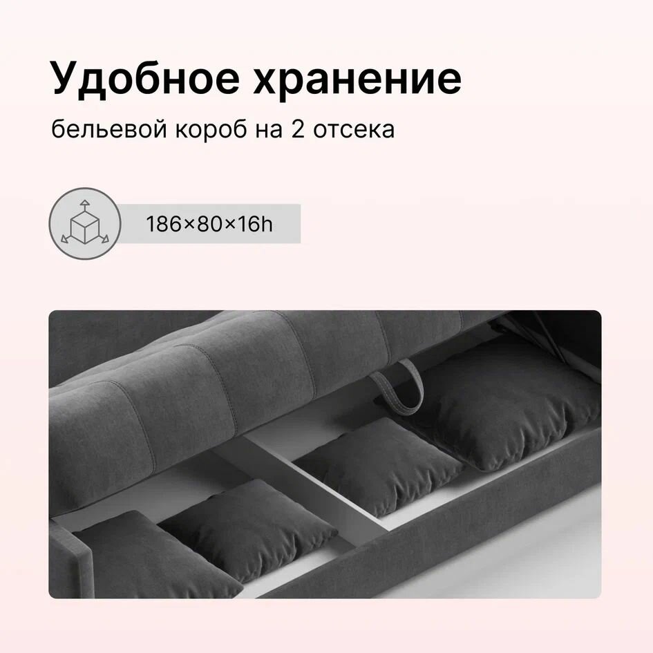 | Особенности | с подлокотниками, съемные подушки, ящик для белья |