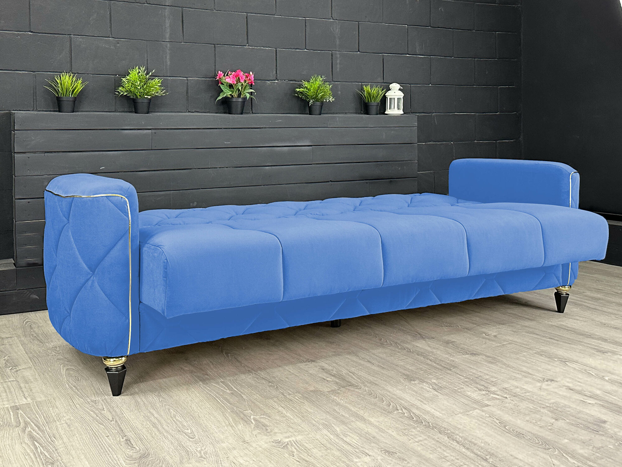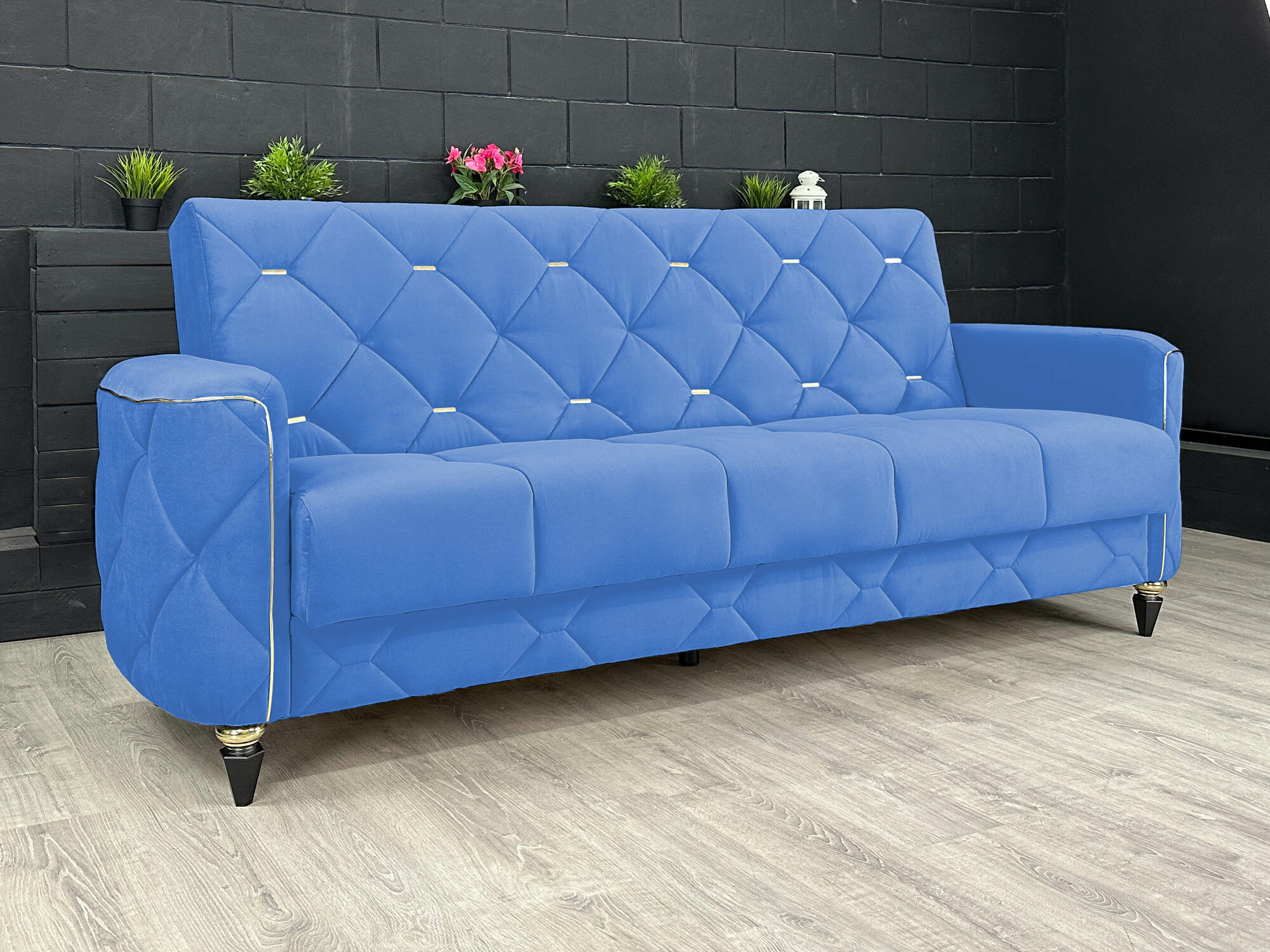Купить Диван раскладной Дубай Велюр синий / ножки - чёрные Djivani