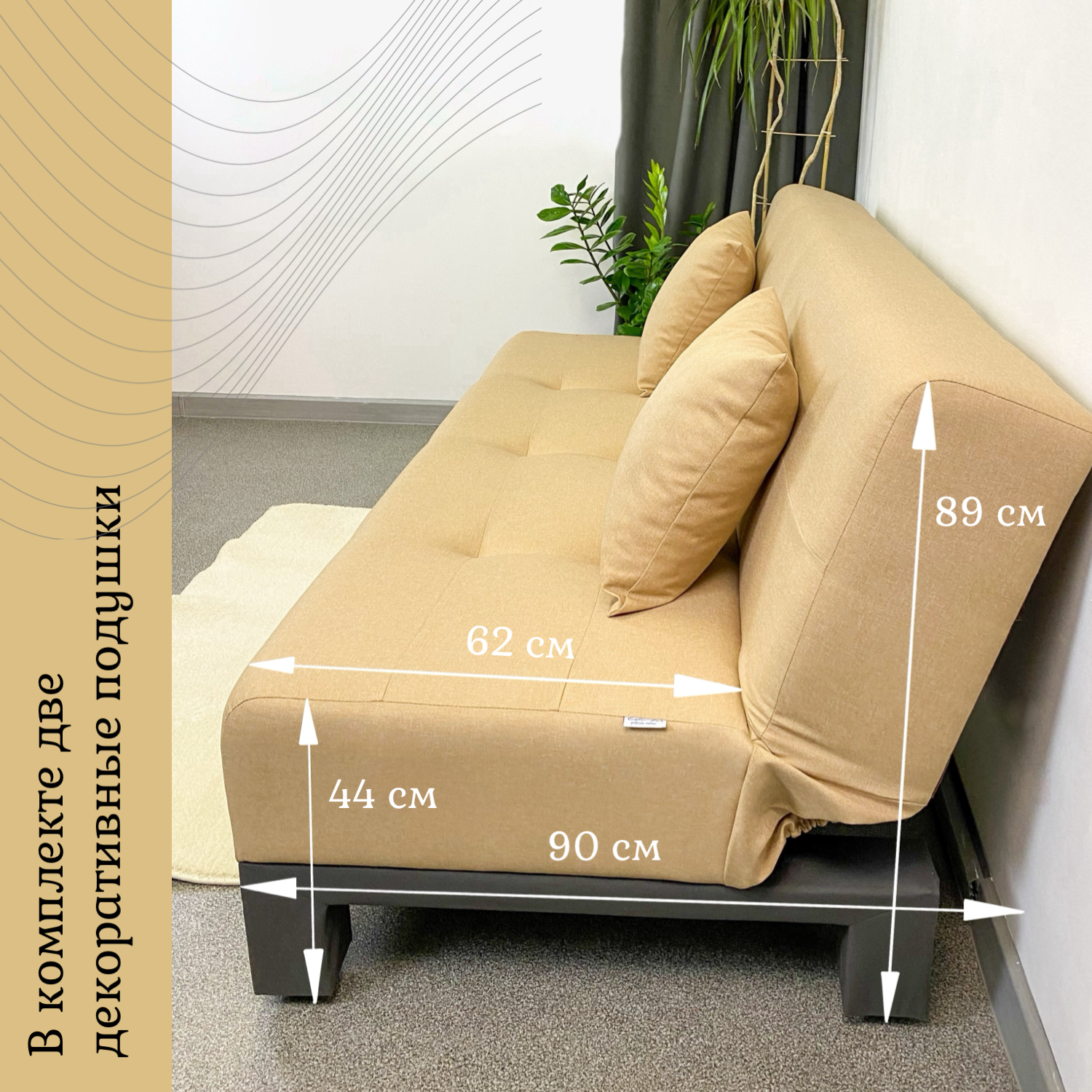| Особенности | без подлокотников, пружинный блок, раскладная конструкция, съемные подушки |