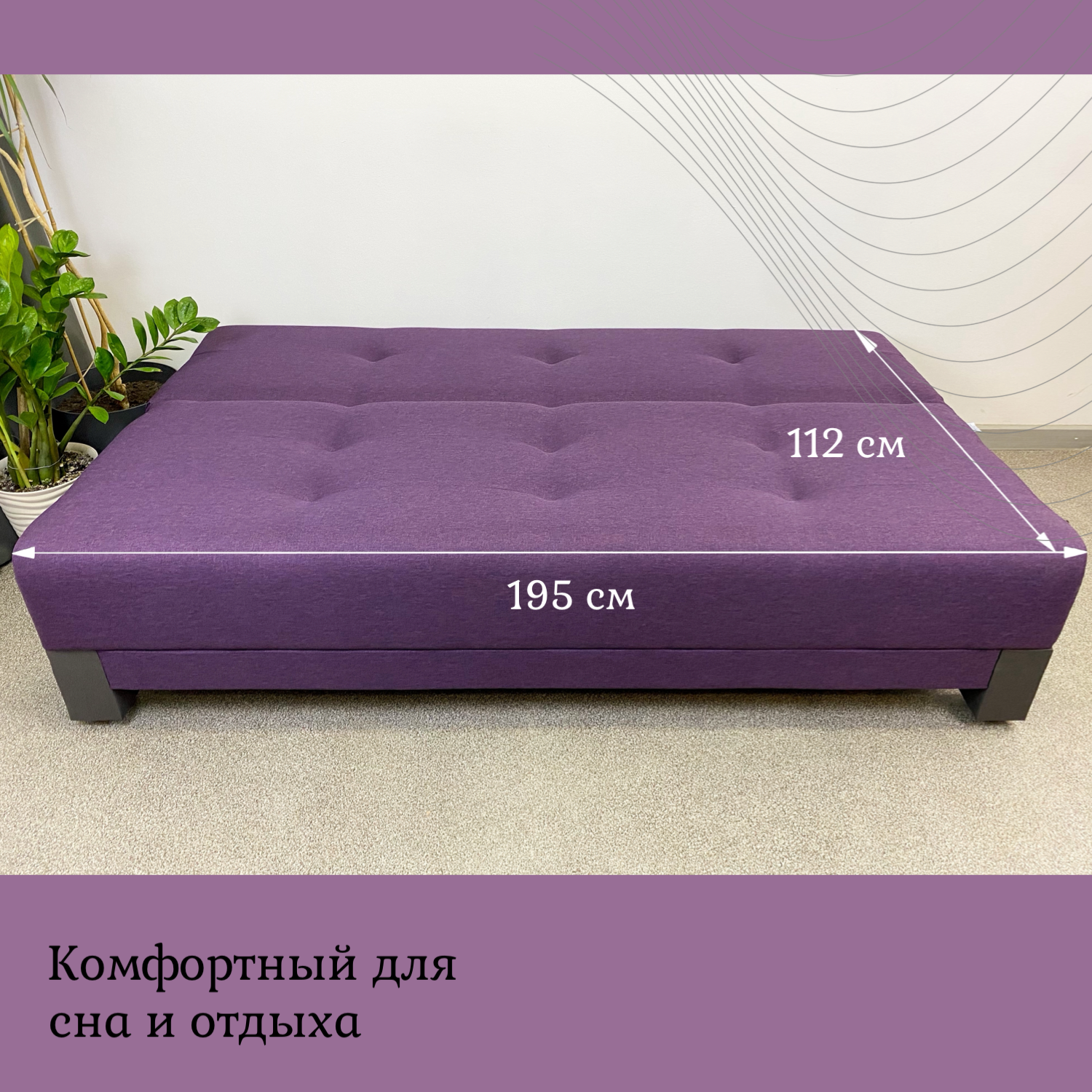 Купить Диван кровать раскладной Поло ЭКО EDLEN, рогожка plum, спальное место 112*195 см