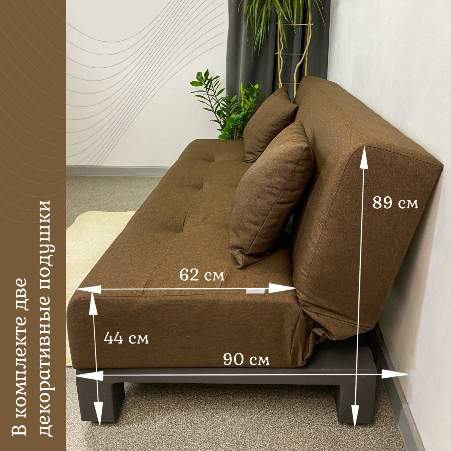 | Особенности | без подлокотников, пружинный блок, раскладная конструкция, съемные подушки |
