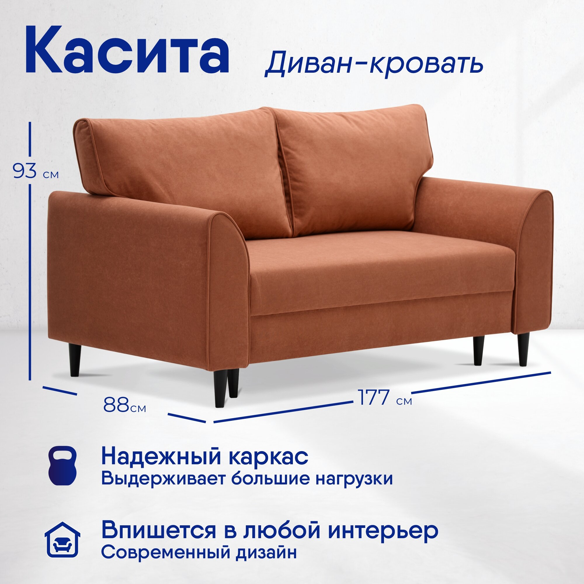 Диван-кровать прямой раскладной Касита 177х88х93 см, еврокнижка, Ладья, спальное место: 190х141 см, Crash 03