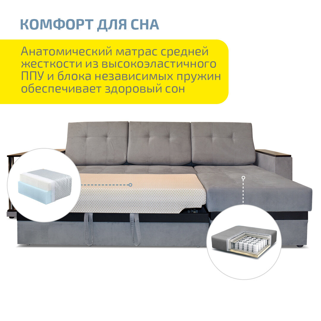 СохранитьУгловой диван кровать AH! DIVAN (АхДиван) Атланта с полкой, 263x162х72 см, раскладной механизм дельфин, независимый пружинный блок, серый велюр интересное: