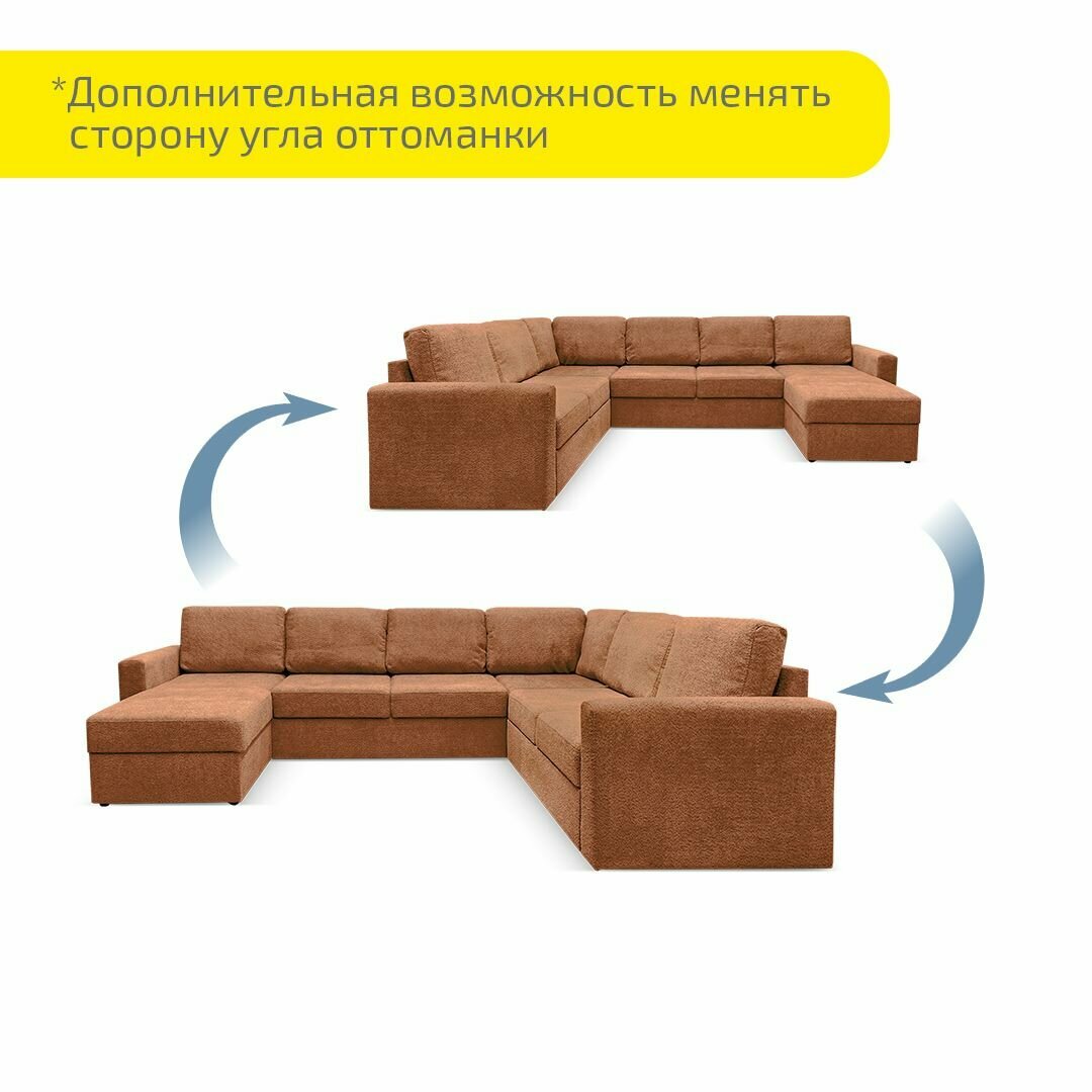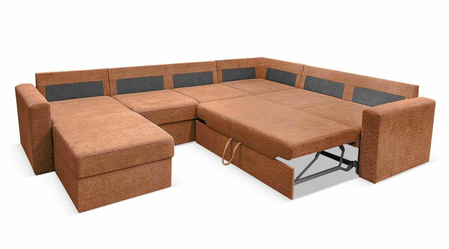 Диван угловой AH!DIVAN 304х235х85см, раскладной П-образный Кольдинг, механизм дельфин, терракотовый, букле