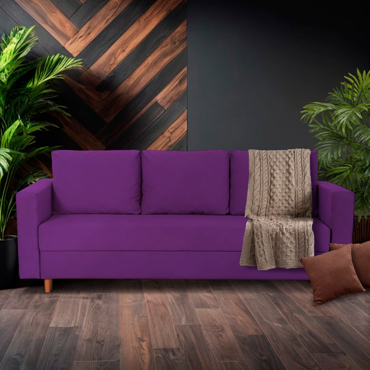 Раскладной диван кровать Ванкувер прямой, механизм еврокнижка, 220х96х85 см, фиолетовый, диванчик на ножках с ящиком для хранения