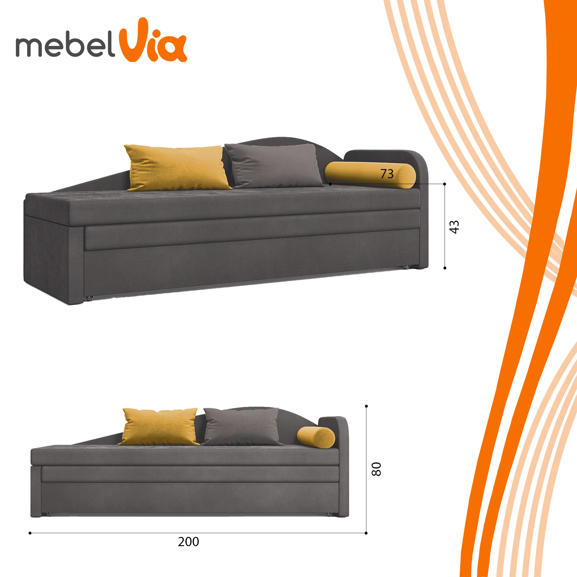Диван-кушетка Гриф, левый, велюр, желтый, 200х73х80 см, MebelVia