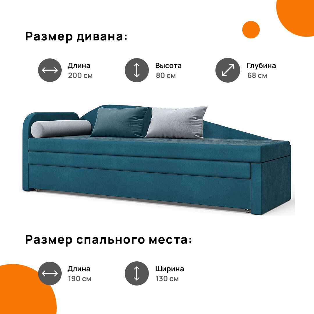 Диван-кушетка Гриф, правый, велюр, синий, 200х73х80 см, MebelVia
